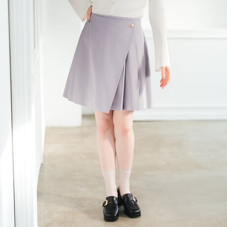 ラップ風デザインが映える、軽やかなプリーツスカート