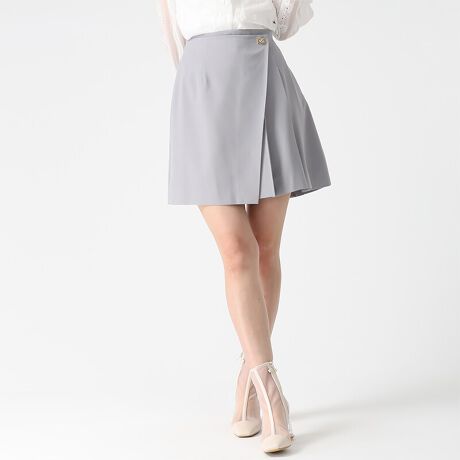 ラップ風のタックデザインが目を引く、軽やかな印象のスカート。
