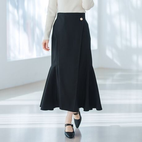 ラップ風デザインが印象的な、女性らしいラインを引き立てるマーメイドスカート。
