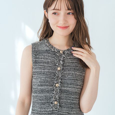 2026春夏新作 ツイード編みフリンジニットワンピース