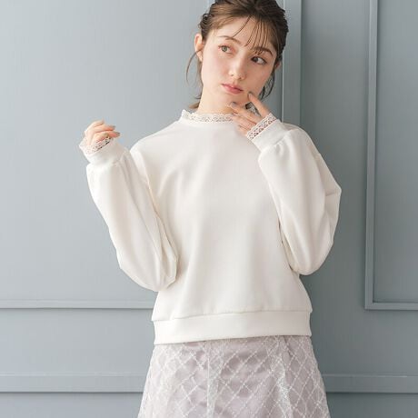 レースがさりげなく映える、大人カジュアルなスウェットトップス。
