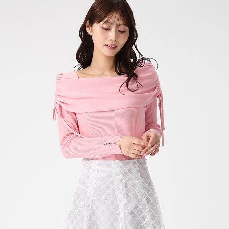 シアー素材のケープデザインが印象的な、女性らしさを引き立てるニットトップス。肩まわりに施したシャーリングとリボンが、さりげないアクセントになっています。スカートでフェミニンにまとめたり、パンツ合わせで甘さを抑えた着こなしも楽しめます。■fabric透け感[やや有り]裏地[無し]伸縮性[有り]生地の厚さ[普通]