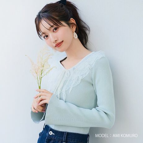 2026春夏新作 レースラッフル配色リボンニット