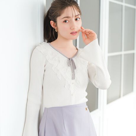 マルイウェブチャネル   /   ミッシュマッシュ   /   トップス   /   ニット・セーター   /   2026春夏新作 レースラッフル配色リボンニット