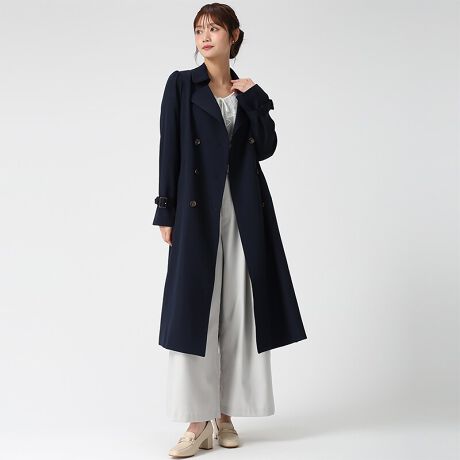 ベーシックなデザインに、サイドプリーツでさりげない動きをプラスしたトレンチコート。