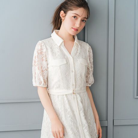 繊細なレース素材に、開襟デザインで程よい抜け感を添えた上品なワンピース。