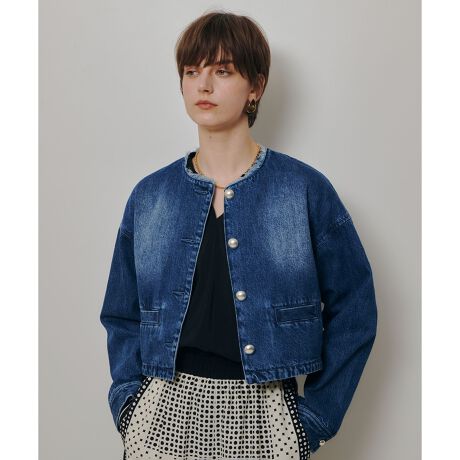 デニムでノーカラーのボクシーな