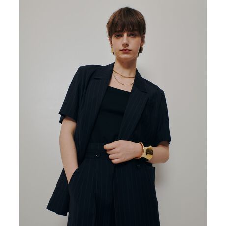 オフィスでも活躍できる生地です。特にJKは着脱での温度調整ができるアイテムなので、ユーザーには嬉しい生地感。