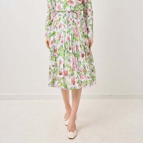 【NARACAMICIE】ラインフラワー柄プリーツスカート