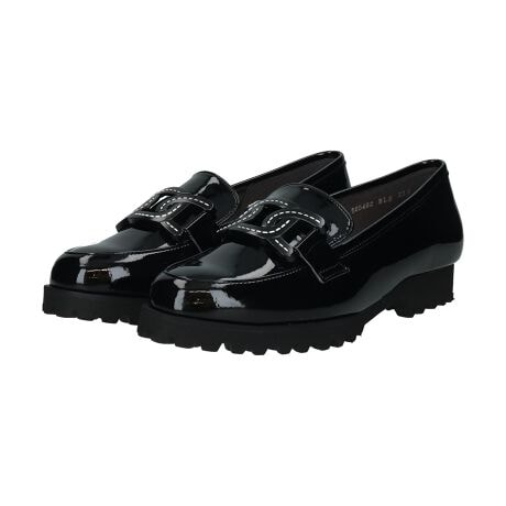 甲部分にあしらったパーツがさりげないアクセントの、シーズンレスで使える上品ローファー。