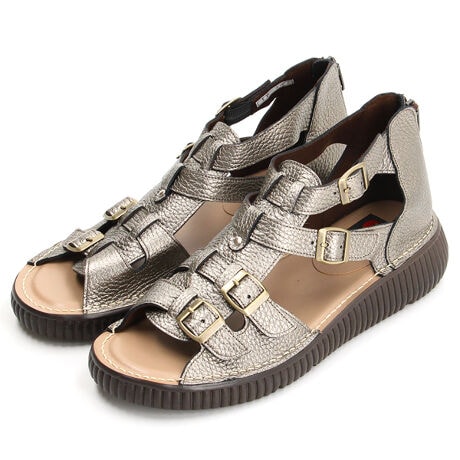 上質な本革を使用したバックファスナーサンダル。