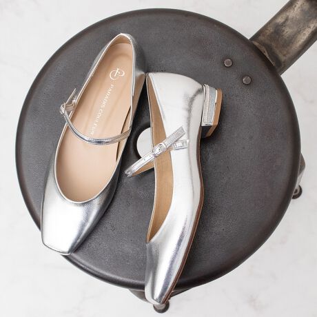甲ストラップ仕様でホールド感があり、安定感のあるローヒールで疲れにくい快適設計です。