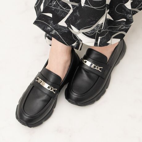軽やかな履き心地が魅力のローファースニーカーは、メタルチェーンをあしらい華やかさをプラス、カジュアルになりすぎない大人の足元を演出します。