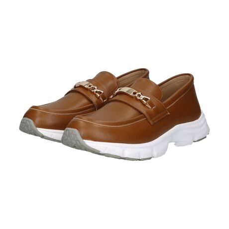 軽やかな履き心地が魅力のローファースニーカーは、メタルチェーンをあしらい華やかさをプラス、カジュアルになりすぎない大人の足元を演出します。