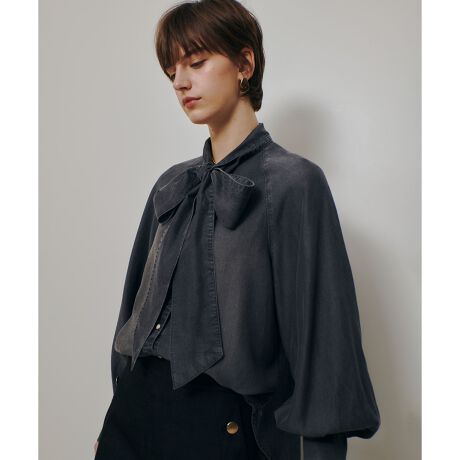 しなやかなデニムをこだわりのヴィンテージ加工で仕上げました。デニムというカジュアルな表情はそのままに、リボンタイや、やや膨らんだお袖で、フェミニンな要素をプラス。セミフォーマルなツイードやマニッシュなジャケットにも。鮮度UPした着こなしに仕上げます。ミルキーなドットボタンで、ほのかにウェスタンな気分を忍ばせました。