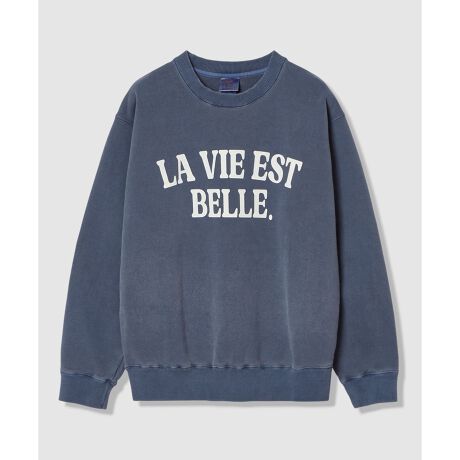 大人のスタイリングに丁度良い裏毛のロゴスウェットプルオーバー。ピグメントダイでニュアンスの出る風合いに仕上げているので、程良く力の抜けた大人のカジュアルスタイルが完成します。長すぎない着丈とボリューム感がこなれたイメージに。白×BK/ ピンク×NV/ NV×IVの三色展開です。[ LA VIE EST BELLE.]日本語の意味としては「人生は美しい」、という幸福や新しい始まりを象徴する魔法の言葉で、春の始まりにぴったりの言葉です。