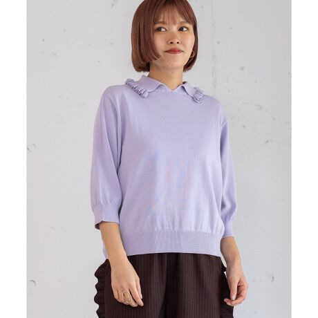 毛羽を抑えた強撚コットンで編み立てた、衿付きのニットプルオーバー。衿周りのフリルデザインがさりげないポイントです。きちんと感もありながら、程よくゆとりを持たせたシルエット。デニムやパンツを合わせたカジュアルスタイルから、スカートを合わせたきれいめスタイルまで幅広く着回し可能です。半端袖なので、ロンTやシャツを重ねたレイヤードスタイルも今っぽく着こなせます。