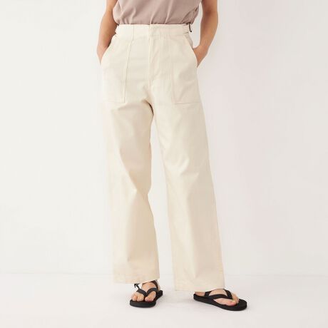 ヒップ下から真っすぐ落ちる、ストレートワイドシルエットが特徴。