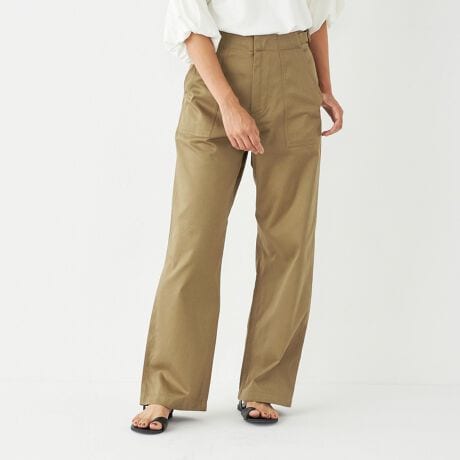 ヒップ下から真っすぐ落ちる、ストレートワイドシルエットが特徴。