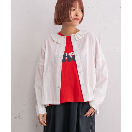 肩を落としたボックスシルエットをベースに、程よい甘さのプリーツ衿をあしらったシャツ。前後差のある着丈とサイドスリットで、こなれた印象に仕上げています。