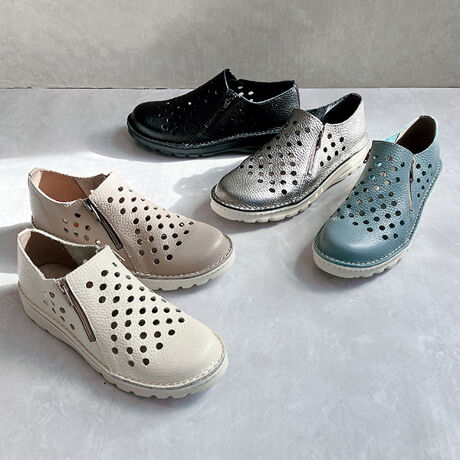 甲部分は足にやさしくフィットし、脱ぎ履きしやすい仕様で、サイドファスナーも付いているので日常使いにも最適です。