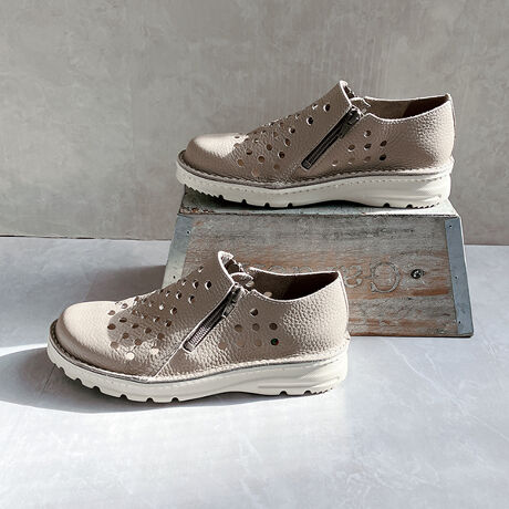 甲部分は足にやさしくフィットし、脱ぎ履きしやすい仕様で、サイドファスナーも付いているので日常使いにも最適です。