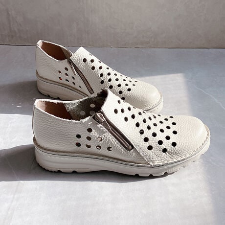 甲部分は足にやさしくフィットし、脱ぎ履きしやすい仕様で、サイドファスナーも付いているので日常使いにも最適です。