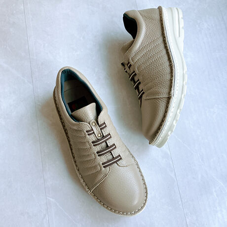 【26春夏新作】本革仕立て軽量スニーカー 甲ゴム仕様で快適フィット・アウトステッチデザイン