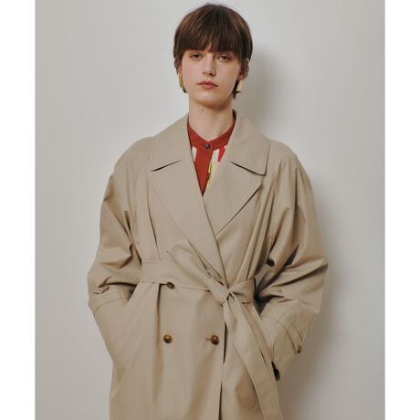 タテ糸ヨコ糸違う色でツイル組織に織られている先染めのシャンブレーギャバ素材のコートになり、撥水加工が施されています。トレンチのデザインを衿の切り替え位置を下げて、オーバーサイズにし、オーセンティックな中にも抜け感ある雰囲気を出しているスプリングコートになります。ショート丈になり、春だけではなく、他の季節にも重宝するアウター。パンツはもちろん、ウエストベルトを絞って着ていただくことでスカートやワンピースなどとの相性も抜群です。
