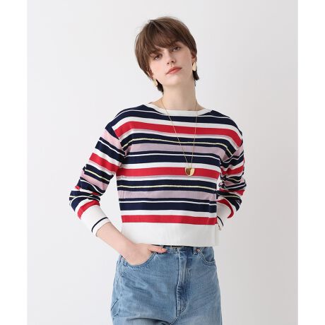 ハイツイストコットンをベースに透ける糸とブークレーの3種類の素材を使用し、ニットならではのテクスチャーのコンビネーションを追求したテキスタイル。一見キャッチーなセーターですが、ものつくりへのこだわりを感じられる大人のためのハイカジュアルな一枚となっております。