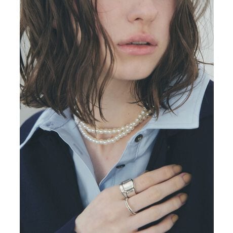 繊細なパールの艶と、シャープなフックデザインが印象的なネックレス。