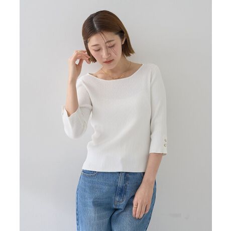 袖に施したボタンがアクセントになったリブニット。