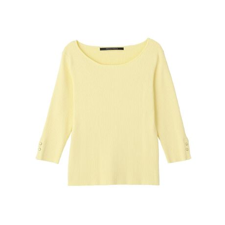 ボートネックのラインが程よい抜け感を演出。七分袖で春先から夏まで長く着回せます。