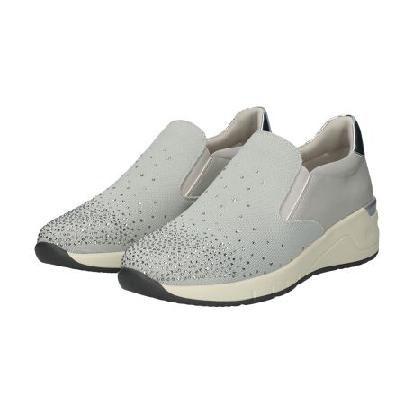 日常に上品なきらめきを添えてくれるスリッポンスニーカー。アッパーにラインストーンをあしらい、華美になりすぎず落ち着いた華やかさを演出します。本底はさりげないヒールアップ設計で自然な脚長効果が期待できるのも嬉しいポイント。スリッポン仕様のため脱ぎ履きしやすく、忙しい毎日でもストレスなくお使いいただけます。クッション性のよいカップインソールが足への負担を軽減し、歩行を快適にサポート。アッパーと中底を袋状に縫い合わせる袋縫い製法を採用、足を優しく包み込み、足の動きにしなやかに寄り添う屈曲性が魅力の普段使いからお出かけまで幅広く活躍する1足です。