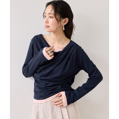 ・インナーを重ねたようなレイヤード風デザインで、着るだけでこなれ感を演出