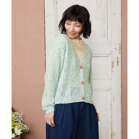 カラフルな糸で編み立てたカーディガン。身幅にゆとりを持たせたリラクシーな着用が魅力。ややコンパクトな丈感でゆとりがありながらもすっきり見えのシルエットに。編地はリブ編みとケーブル編みを組み合わせ、凹凸感と羽織りやすさを実現。袖口に丸みを持たせ、女性らしい印象を後押しします。首元のVネック仕様や微配色のボタンにも注目です。
