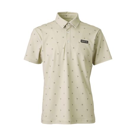 マリンモチーフとフラミンゴのコンビネーション柄をプリントし、左胸にオリジナルのロゴプレートを配したトラッドな台衿シャツ。