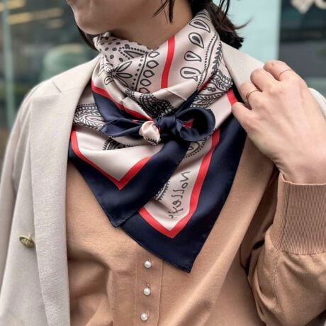 ・滑らかな手触りと、美しい光沢が魅力的なシルク100%のプリントスカーフ