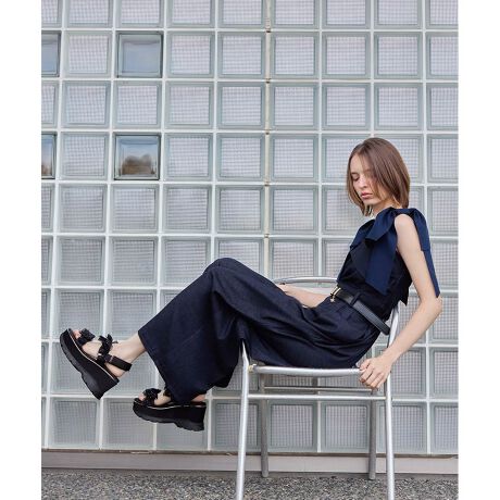<26春夏新作>2WAY リボンショルダーロンパース