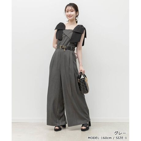 <26春夏新作>2WAY リボンショルダーロンパース