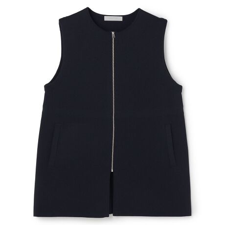 きれいめスタイルに合わせやすい、ミラノリブのニットジレ。ウエストのドロストコードで、自由にウエストのシェイプ具合をを調節可能。前あき部分をZIP使いにしているので、キーネックベスト風にもご着用いただけます。スラッシュポケットで、よりシャープでスッキリとした印象に仕上げました。