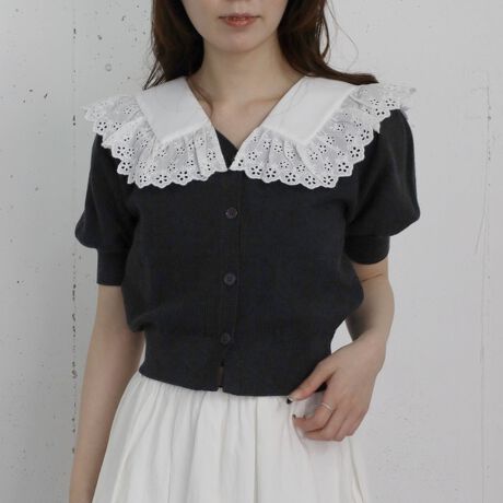 ・存在感のあるフリルカラーが着映えを叶えてくれるカーディガン