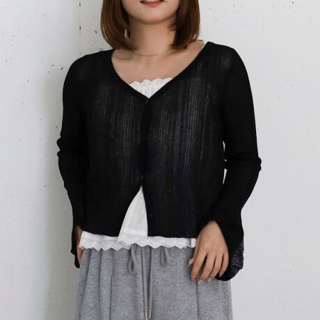 ・カーディガンは軽やかなシアー素材で涼しげな着心地