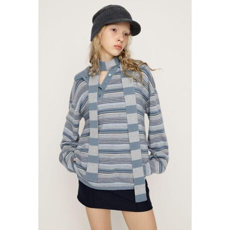 【HG KNIT ASYMMETRY TOPS】■POINTトレンドの襟付きトップスに前立てが斜めにデザインされたSLYらしい遊び心のあるニットトップス。同素材のタイスカーフ付きで、前立てボタンを開けてワンショル風でも着用可能の為、様々な着こなしを楽しめるアイテムです。■DETAILオーバーサイズシルエットで、落ち感のあるハイゲージ天竺ニットを使用し、カジュアルすぎない上品な印象を与えます。どんなボトムスとも相性の良い杢グレーに加えてオリジナル配色ボーダーのマルチブルー、春を先取りできるライトイエローの3色展開です。■STYLINGカジュアルなデニムやスウェットパンツ合わせはもちろん、ワンピースの上から着用するスタイリングも一押し。ミニボトムスと合わせて、ワンピース風に着用したガーリーなスタイリングもおすすめです。■FABRIC/MATERIALハイゲージ天竺ニットを使用。■透け感:なし■光沢感:なし■伸縮性:なし■裏 地:なし[注意事項]※画像の商品はサンプルです。実際の商品と仕様、加工が若干異なる場合があります。※画像の商品は光の照射や角度、お使いのモニター環境により、実物と色味が異なる場合がございます。※着用、お取り扱いの際は、アテンションタグをご確認ください。※一部予約商品につきましては生産上の都合によりお届け予定日や店頭発売と前後する場合もございます。※追加生産商品は、一部の店舗、通販で販売中の場合がございます。予めご了承下さい。
