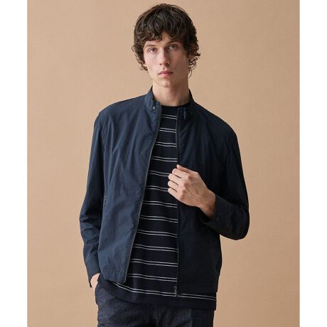 背中の裏地を省いて軽く仕上げたショート丈のブルゾンです。両脇の裾にはゴムシャーリングを採用し、体にフィットさせて風が入りにくい仕様になっています。