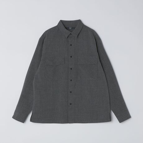 ウール調の素材を使用したボックスシルエット型のシャツ。