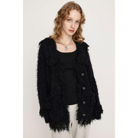 【DAMAGE V/N OVER MG C/D】■POINT:毛足のあるシャギー糸を贅沢に使用し、存在感たっぷりのVネックカーディガン。大胆に施されたフリンジディテールがグランジ感のある印象に。動きに合わせて揺れるフリンジは表情豊かに映え、スタイリングの華やかなアクセントになります。■DETAIL:軽量のシャギーニットにポコポコとした表面感のあるノット糸を混ぜ合わせた編地を使用し、ボリューム感のある見た目ながらも軽やかな着心地が魅力です。襟付きの程よいあきのVネックで顔まわりをすっきりとさせ、ヒップにかかる着丈とゆったりとしたオーバーサイズで、ボトムを選ばずバランスよく着こなせます。ベーシックで着回しやすいブラックとグレーに加えてシーズンムードを高めるブラウンの3色展開です。■STYLING:デニムやワイドパンツと合わせたカジュアルスタイルはもちろん、ミニボトムと合わせてガーリーに仕上げるのもおすすめ。フロントを閉じてトップス風に着たり、開けてラフに羽織ったりと、ロングシーズン活躍します。■FABRIC/MATERIAL:軽量のナイロンシャギーニットにポコポコしたノット糸を混ぜ合わせた編地を使用。■透け感:なし■光沢感:なし■伸縮性:なし■裏 地:なし本品は、着用(使用)や洗濯クリーニングにより、毛羽立ちや毛玉が発生することがあります。・連続着用はお避け下さい。・毛玉が出来てしまった場合は、毛玉取り器またはハサミで丁寧にカットして取り除いて下さい。・毛並みのある製品は表面を軽くブラッシングして毛並みを整えて下さい。[注意事項]※画像の商品はサンプルです。実際の商品と仕様、加工が若干異なる場合があります。※画像の商品は光の照射や角度、お使いのモニター環境により、実物と色味が異なる場合がございます。※着用、お取り扱いの際は、アテンションタグをご確認ください。※一部予約商品につきましては生産上の都合によりお届け予定日や店頭発売と前後する場合もございます。※追加生産商品は、一部の店舗、通販で販売中の場合がございます。予めご了承下さい。