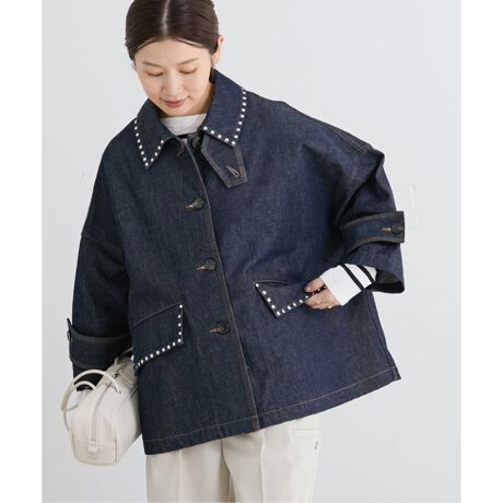衿とフラップ部分にスタッズを施した、エッジ―で遊び心のある一着です。