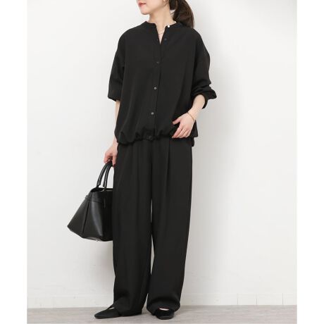 トップスは、フロントのみ裾のドロストでシルエットを調整でき、ヒップが隠れる着丈。