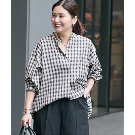 やや落ち感のある肌触りの良い素材感のブラウスもメンズライクなチェックでジャーナルスタンダードらしい1枚。